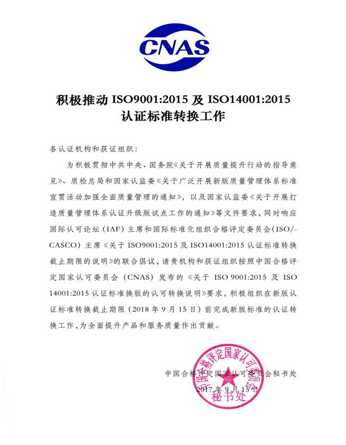 ISO9001和ISO14001認(rèn)證轉(zhuǎn)換截止說明